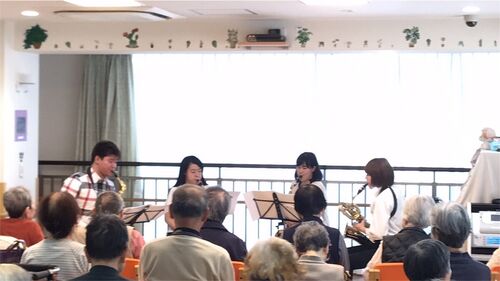大阪支部コーディネーター山地です!桜が咲いたと思ったらあっと言う間に葉桜になり、夏の訪れを感じる季節になりました! そんな中、先日ココファン桜川にて、松田拓也サクソンフォンカルテット様のサックス四重奏による春の演奏会が開催されました。 アル…