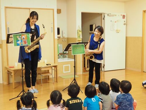 こんにちは! パフォーマンスバンクコーディネーターの須藤です! 9月14日東京都八王子市の保育施設にて、Ensembleかぷりす様のサクソフォーンデュオによる演奏会が行われました。 演奏会前、お子さんのいらっしゃる部屋まで音出しをして準備をするサクソ…