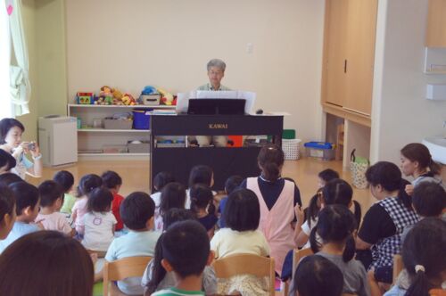 本日は江東区の保育園に、ピアニスト渡辺修司さんの演奏をお届けしました。 こちらの保育園は今年度にオープンしたばかりということで、こういった出張コンサートの開催は初めてということでした。そのためか開演前は子どもたちもちょっとそわそわした様子で…